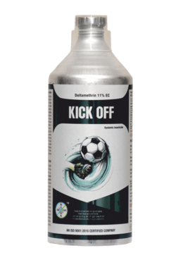 • Mode of Action:Kick Off (DELTAMETHRIN 11% EC) is effective against insects via ingestion and direct contact. Pyrethroids, in general, interfere with normal production and conduction of nerve signals in the nervous system. Pyrethroids act on nerve membranes by delaying t